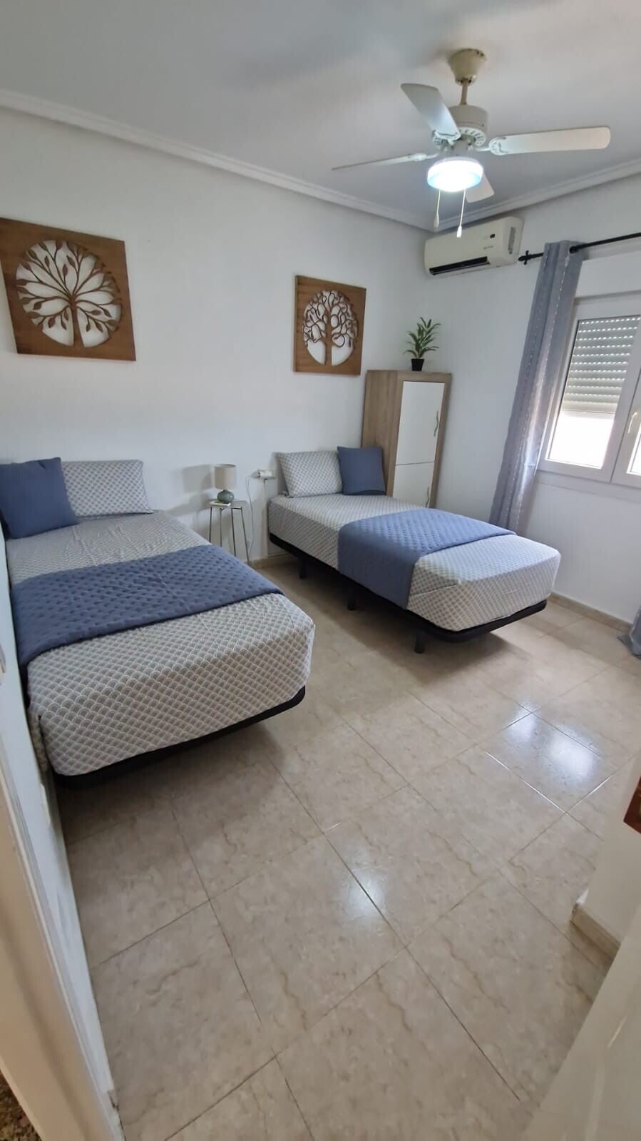 De Blauwe kamer beschikt over een grote vaste kledingkast waarin u al uw kleding en persoonlijke bezittingen kunt opbergen. Daarnaast is de kamer uitgerust met een plafondventilator en airconditioning voor een aangename temperatuur, ongeacht het weer buiten.